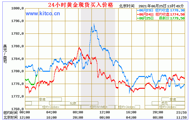 (2021年6月25日)国际黄金价格表 名称 最新价 涨跌 涨跌幅% 买价 卖价 开盘价 昨收价 最高价 最低价