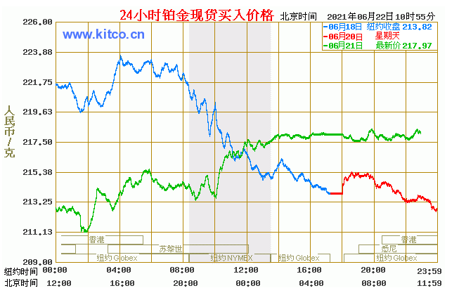 铂金价格走势图今日最新铂金行情(2021年6月22日) 今日最新铂金行情:217.97 备注:以上铂金价格仅供参考,请以官方价格为准。