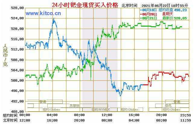 钯金价格走势图今日最新钯金行情(2021年6月22日) 今日最新钯金行情:520.65 备注:以上钯金价格仅供参考,请以官方价格为准。