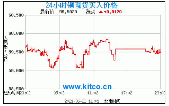 铜价格走势图今日最新铜价行情(2021年6月22日) 今日最新铜价:59.5020涨跌:0.0129 备注:以上铜价格仅供参考,请以官方价格为准。