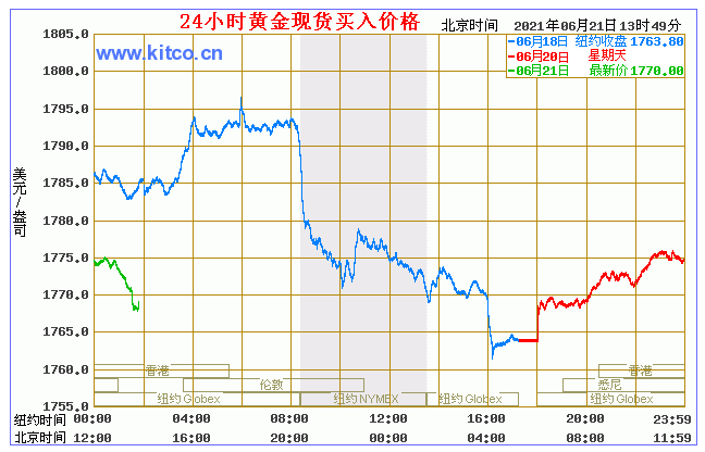(2021年6月21日)国际黄金价格表 名称 最新价 涨跌 涨跌幅% 买价 卖价 开盘价 昨收价 最高价 最低价