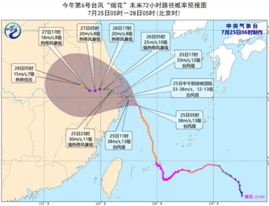 【#7月25日晚台风烟花将再次登陆#】据@中央气象台消息,今天晚上,#台风烟花#将在浙江嘉兴到上海浦东沿海再次登陆(台风级12~13,33~35米/秒),请做好准备! 台风烟花(2015年第26号台风) 超强台风烟花(英语:urTyhooI-fa,国际编号:1526,联合台风警报中心:27W)为2015年第26个被命名的风暴。“烟花”一