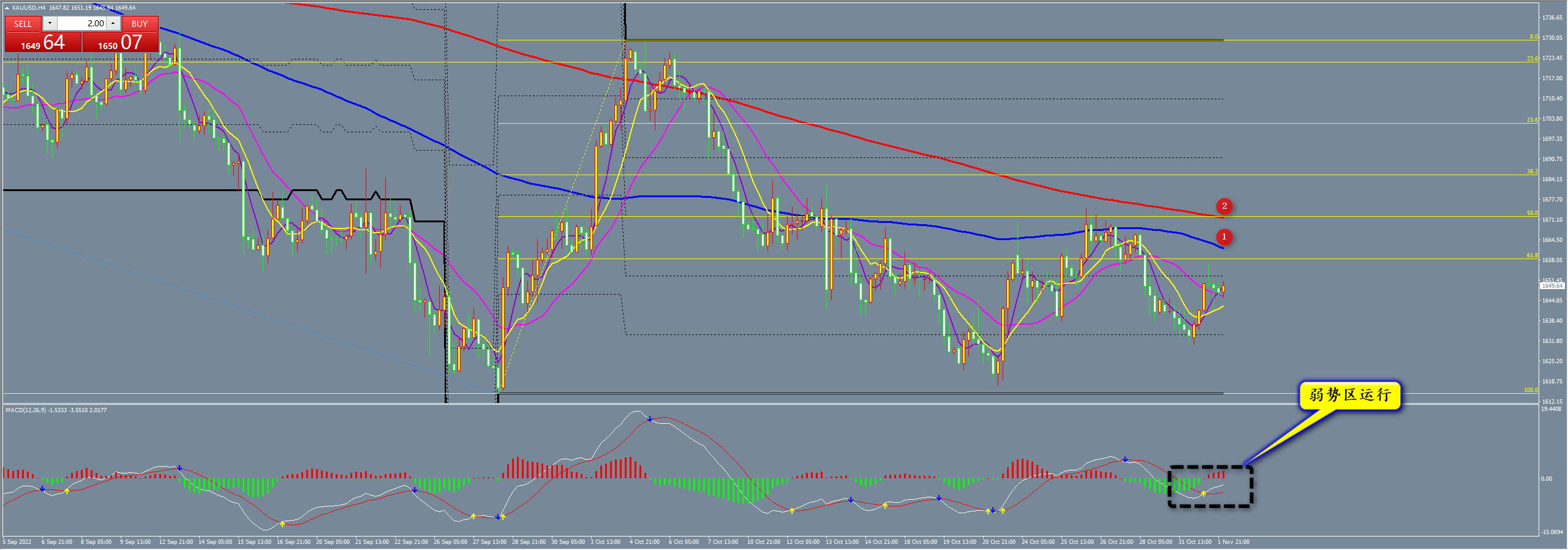 通过对原油小时图解析得知,昨日行情先跌后涨晚间一度到达85.20一线,在下方均线支撑位止跌反弹目前依然受制于下降趋势线的压制以及上方均线的压制,短期的均线系统已经形成多头排列,下方的均线已经构成支撑,目前MACD虽然在零轴下方运行但是非常有可能再次站上零轴到达强势区运行,上方一旦放量突破下降趋势线的压制以及均线的压制将会继续形成震荡上行走势,短期在操作上我们继续高空低多思路,具体建议如下: