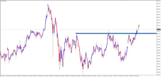 【技术点评】:H1周期,比特币多头发力冲破阻力位,打开上涨空间。
