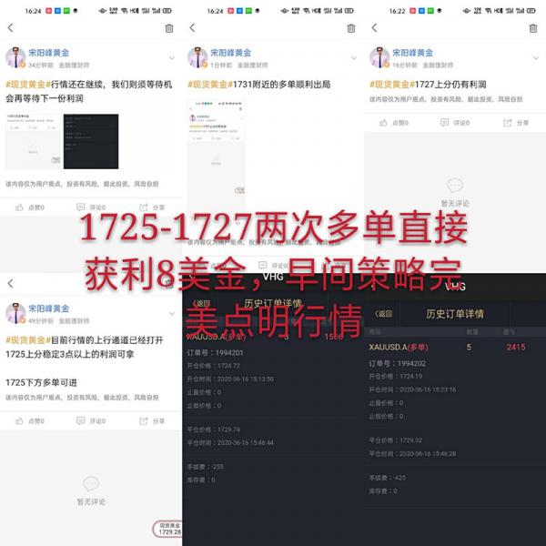 宋阳峰:黄亚汇资赚钱单子拿不住亏钱却死撑!做出改变赚钱并不难! 6月22日美盘开盘后,金价上破1760美元/盎司,续创一个月新高,逼近八年高位,日涨幅超1%。这波行情你抓住了吗?后市黄金触及1762后回踩1750这又是一波利润,你抓住了吗?是否再次错过了! 最近宋阳峰发现市场一个普遍的情况,在过山