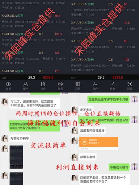 宋阳峰:黄金原油市场85%的散户都在亏损!用事实教你如何一周翻仓! “一天一周甚至一月的行情过去了,你目前做的怎么样了?是赚是亏?我无从得知,最近很多找到我的朋友,都会有这样一个问题。老师,我总是赚少亏多,赚三单抵不上亏一单的。这是为什么?为什么?因为你赚钱得单子拿不住,亏钱的单子死扛。为