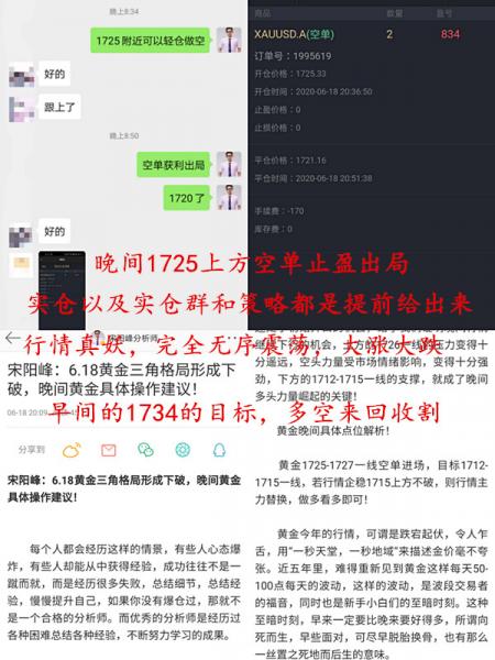 宋阳峰:6.18黄金三角格局形成下破,晚间黄金具体操作建议! 每个人都会经历这样的情景,有些人心态爆炸,有些人却能从中获得经验,成功往往不是一蹴而就,而是经历很多失败,总结细节,总结经验,慢慢提升自己,如果你没有爆仓过,那就不是一个合格的分析师。而优秀的分析师是经历过各种困难总结各种经