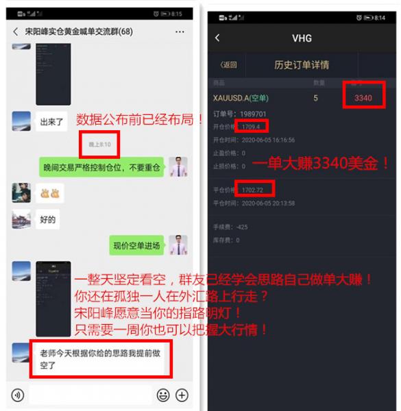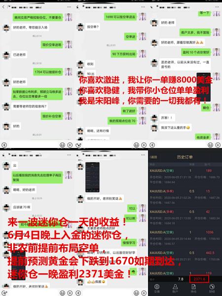 宋阳峰:本周非农大赚70点,黄金回本计划已出!最后三个名额! 行情大幅波动,有人欢喜有人忧!有的朋友趁势做了一笔大的,大挣一笔;有的朋友没找准方向,套单,锁单,更有甚者,爆仓。不知道大家找过原因没有,为什么在同样的市场同样的行情,悲喜两重天呢? 贵金属市场上很多做黄金白银的投资者可