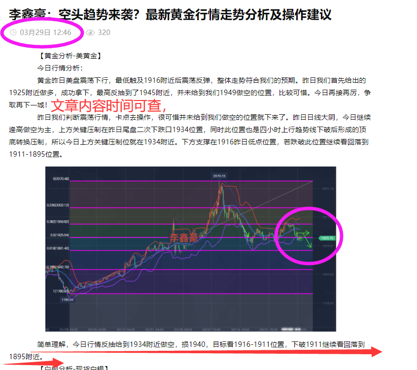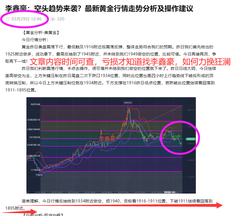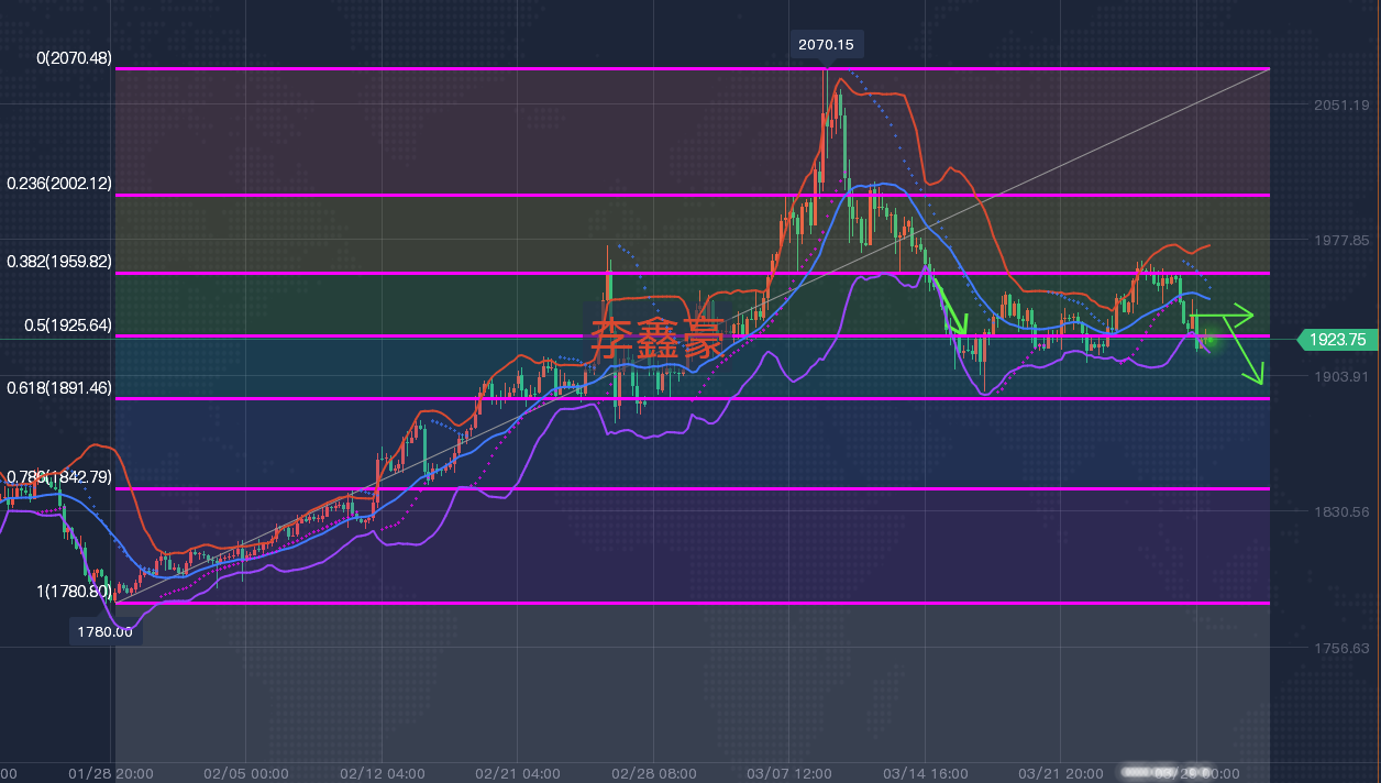 【黄金分析-美黄金】 今日行情分析: 首席专业黄金白银分析师李鑫豪,提供实盘交易指导,私人订制一套详细的交易计划和风险控制方案,实盘操作指导添加:OLL500 黄金昨日美盘震荡下行,最低触及1916附近后震荡反弹,整体走势符合我们的预期。昨日我们首先给出的1925附近做多