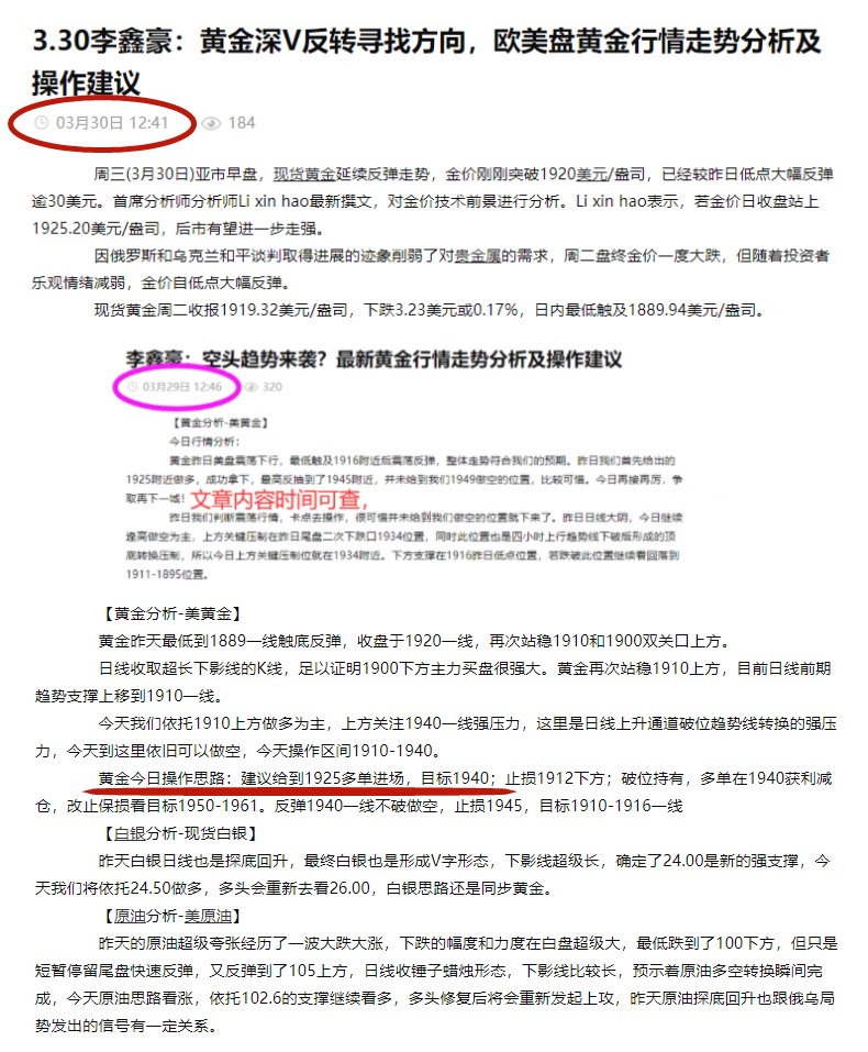周三(3月30日)亚市早盘,现货黄金延续反弹走势,金价刚刚突破1920美元/盎司,已经较昨日低点大幅反弹逾30美元。首席分析师分析师Lixihao最新撰文,对金价技术前景进行分析。Lixihao表示,若金价日收盘站上1925.20美元/盎司,后市有望进一步走强。 首席专业黄金白银分析师李鑫豪,提供实盘交易指导,私
