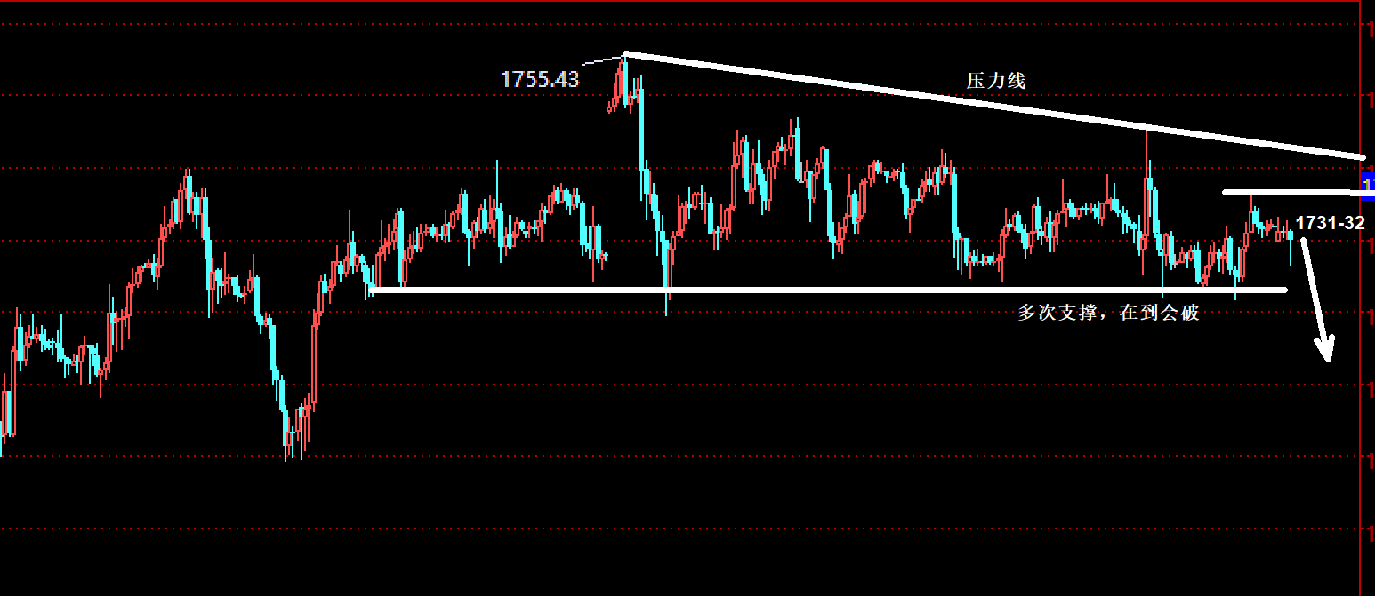 黄金当前还是区间震荡走势,上周五连续下探1721位置获得支撑反弹,最高触及1737一线,我们1724的现价多也是如期上涨止盈!今日还是区间内高抛低吸,早盘回落1725下方后可以继续多! 黄金明显的区间震荡,这是大家都能看到的实际走势,无论对破位有多高的期待,时机走势不会骗人!那么对于当前的黄金,我们还是划定交易