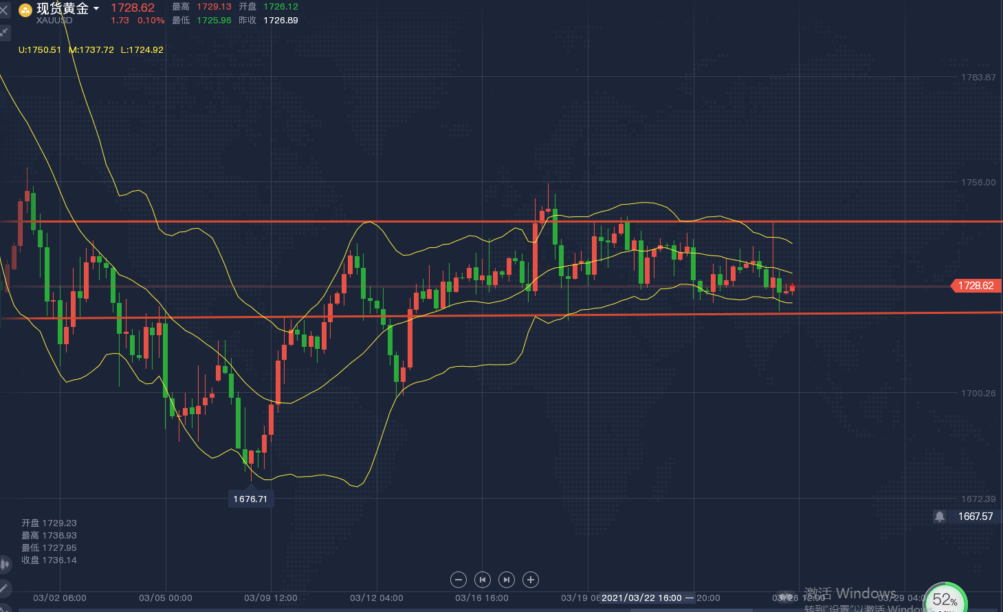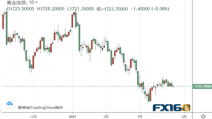 周五(3月26日)亚洲时段,现货黄金在1730下方震荡运行,美元依旧强势,美债收益率企稳反弹,最新出炉的美国初请失业金人数变动好于预期,美国四季度GD数据上修,美联储主席鲍威尔继续强化经济前景乐观预期,令金价承压;尽管欧洲疫情等因素仍给金价提供避险支撑,但基本面已经略微空头;技术面来看,隔夜金价的冲高回