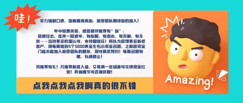 实力铸就口碑,信赖赢得真心,沁雯团队期待你的加入! 年中钜惠来袭,感恩相伴推荐有“你”: 回顾过去,走来一路艰辛,有心酸,有泪水,有不解,有无奈……当然更多的是认可,支持和信任!所以为回馈更多新老客户,现每周给到5个5000美金左右小资金名额,之