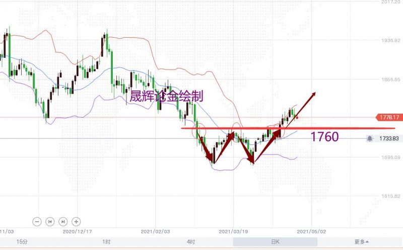 周五(4月23日)美元兑所有G-10货币均下跌,欧元兑美元达到七周高点1.2100,强劲经济数据表明欧洲经济复苏正在全面展开--服务业恢复增长,制造业以创纪录步伐扩张。现货黄金一度下跌0.8%,至每盎司1770.06美元。 这两天晟辉一直在强调要防止一手诱多做空(参考如图),果不其然该来的还是来了。对