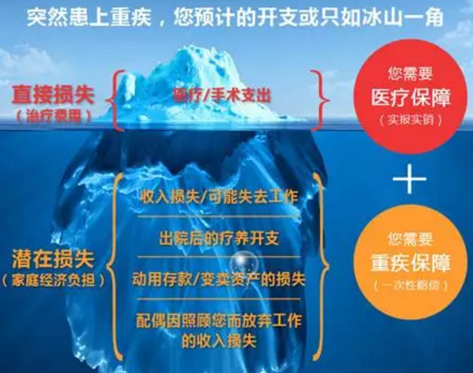 人的一生罹患重大疾病的机会高达72.18%。当前,重大疾病的平均治疗花费一般都在10万元以上(还不包括恢复费用和误工费用)那么,我们靠什么来抵御这突如其来的风险呢? 重大疾病保险简而言之就是以疾病为给付保险金条件的疾病保险。即只要被保险人罹患保险条款中列出的某种疾病,无论是否发生医疗费用或发生多少费用