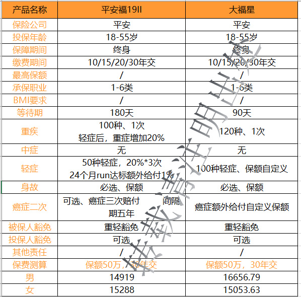 2019年7月18日,中国平安“大小福星”今天正式上市,这是今年平安的另一个大动作,大福星对标的是平安福2019成人版,小福星对标的是少儿平安福。 点评: 大小福星的投保规则,跟平安福没有什么太大的区别。 产品形态也极其类似。 都是主险为寿险+个捆绑的附加险。 平安福附加的长期意外一直很坑,