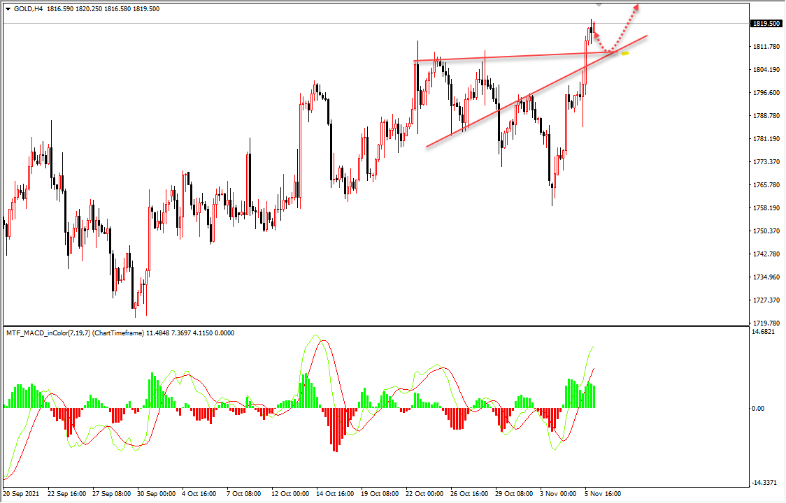 上周五现货黄金日内窄幅震荡,在非农就业报告公布后短线下挫,随后逆转走势,向上突破1800关口,最高触及1818.23,最终收涨1.44%,报1816.70美元/盎司。白银走势相似,亚盘时段走势疲软,于美盘时段走高,站上24关口,收复非农公布后所有跌幅,最终收涨1.57%,报24.15美元/盎司。 上周五公布的美国10月季调后非农就业