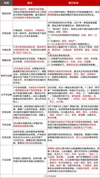 A股经过一轮下跌,阶段性底部已经出现,市场急跌阶段结束,进入反弹期。国信证券认为,当前牛途未尽,是复苏中的调整。开源证券也一改此前持币观点,表示不再悲观,不畏将来。 也有部分券商认为,市场短期仍将延续3月的震荡筑底行情。东吴证券表示,沪指已从此轮低点3344点反弹了100点左右,需防范回踩风险。 而