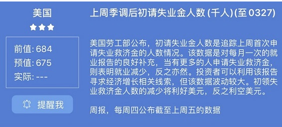 本交易日,投资者将迎来诸多美国重要经济数据,其中初请失业金人数和I制造业I数据是投资者关注的重点。 香港时间周四20:30,美国将公布3月27日当周初请失业金人数数据。上周初请失业金人数降至一年低位,本周有望进一步下滑。 截至3月20日当周,美国初请失业金人数为68.4万人,环比下降9.7万人,为20