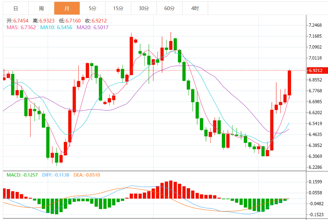 8月美元/人民币走势回顾 8月美元/离岸人民币总体呈现上升趋势,截止发稿,美元/离岸人民币上涨2.51%,突破6.9200关口。短期来看,美元的强势或将延续,对人民币汇率的压制仍在。能源的供给受限并非短期问题,价格共振上涨或将是常态。这不仅加剧了通胀风险,同时也打压生产景气、侵蚀利润,并冲击居民消费;而欧洲更