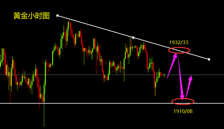 3月22日美元指数冲高回落,因美联储主席鲍威尔周一的讲话给美元带来的提振消退,且欧美股市上扬扶助增强风险意愿。随着美债收益率攀升,市场风险情绪好转,现货黄金一度跌逾1%刷新近四个交易日低点至1910.60美元/盎司。油价震荡走低,交易商继续权衡欧盟禁止进口俄罗斯石油的可能性。 从日线以及小时图