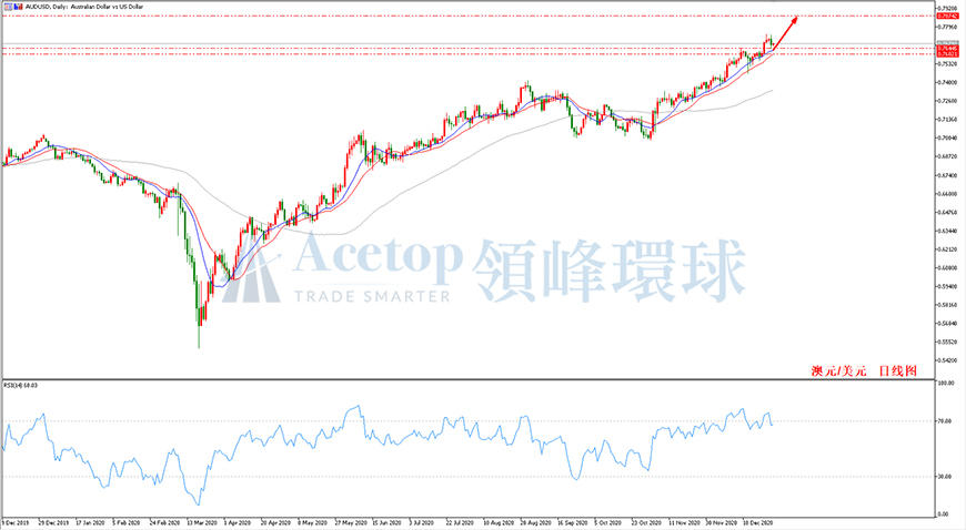 2021年的首个交易日,汇市波动较为激烈。美元指数开盘后一路跌至89.38附近,到美盘时段快速拉升,几乎收复白盘跌势,留下一根长长的下影线;欧元/美元与美元指数走势正好相反,日内小幅上涨0.29%;英镑/美元创出新高至1.3703附近,其后下跌逾160点,盘中跌幅达到1.18%,澳元/美元的跌幅与其相当,整体来说非美货币在剧烈震荡后普遍走跌。