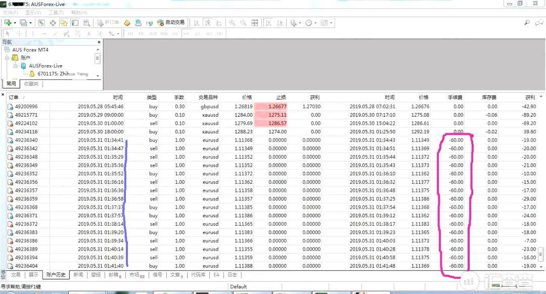 事情的起因是2019年5月31日01:34:41, 汇友账户在不知情的情况下被澳汇经纪人盗刷,被调成高昂手续费,一瞬间造成1809美元亏损。