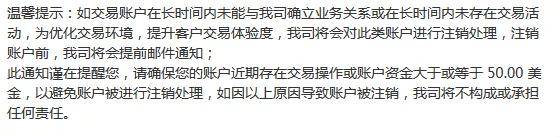 关于注销账户,据悉澳汇平台规定账户资金低于50美元,长时间(具体时间无说明)未存在交易活动,账号会被注销,公司将不构成或承担任何责任。