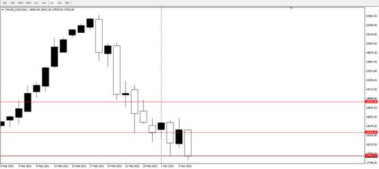 交易策略:在17,980点之下,看空,目标位:17,200点。